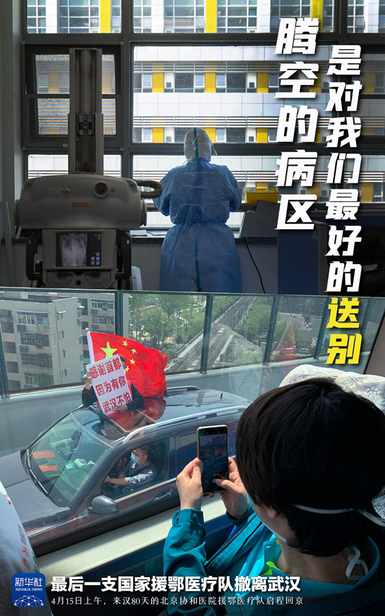 新華社武漢4月15日電 題:揮手,定格在武漢的春天——北京協(xié)和醫(yī)院支援湖北醫(yī)療隊離漢記