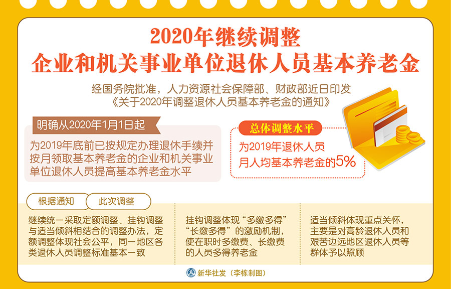 新華社北京4月17日電(記者王優(yōu)玲)經(jīng)國務(wù)院批準(zhǔn),人力資源社會保障部、財政部近日印發(fā)《關(guān)于2020年調(diào)整退休人員基本養(yǎng)老金的通知》,明確從2020年1月1日起,為2019年底前已按規(guī)定辦理退休手續(xù)并按月領(lǐng)取基本養(yǎng)老金的企業(yè)和機關(guān)事業(yè)單位退休人員提高基本養(yǎng)老金水平,總體調(diào)整水平為2019年退休人員月人均基本養(yǎng)老金的5%。