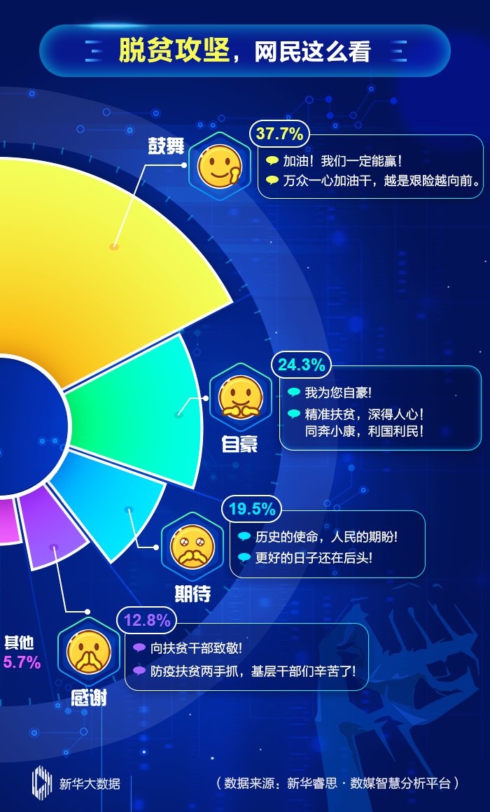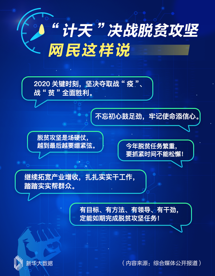 數(shù)據(jù)顯示,倒計(jì)時(shí)沖鋒之際,網(wǎng)民對脫貧攻堅(jiān)非常關(guān)注。有網(wǎng)民留言稱:今年脫貧任務(wù)繁重,要抓緊時(shí)間不能松懈;也有網(wǎng)民留言表示要扎扎實(shí)實(shí)干工作;還有網(wǎng)民留言表達(dá)對完成目標(biāo)任務(wù)的信心:2020關(guān)鍵時(shí)刻,堅(jiān)決奪取戰(zhàn)“疫”、戰(zhàn)“貧”全面勝利。
