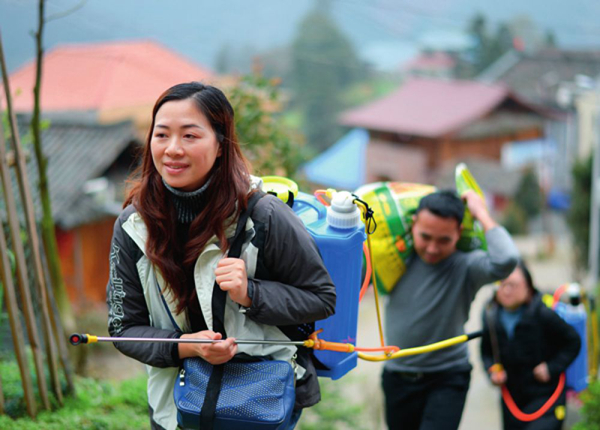 3月7日,貴州省錦屏縣河口鄉(xiāng)加池村,錦屏縣融媒體中心幫扶干部楊曉琴(左)和隊(duì)友給群眾送農(nóng)用物資 楊楹攝