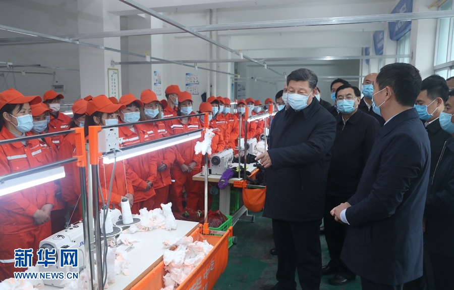 安康市地處秦巴山區(qū)集中連片特困地區(qū)的核心區(qū)。21日上午,習近平來到安康市平利縣老縣鎮(zhèn)錦屏社區(qū)。錦屏社區(qū)累計安置搬遷貧困群眾1346戶4173人。習近平實地察看了社區(qū)電子加工廠、毛絨玩具廠、服飾公司產品展示廳,對當地“山上興產業(yè),山下建社區(qū),社區(qū)辦工廠”的發(fā)展思路給予肯定,勉勵企業(yè)努力克服疫情帶來的不利影響,積極拓展國內市場。習近平強調,今年是脫貧攻堅決戰(zhàn)決勝之年,解決好貧困群眾就業(yè)問題非常重要。各級黨委和政府要加大扶持力度,通過各種方法保障貧困群眾就業(yè)。鎮(zhèn)上的群眾聽說總書記來了,紛紛來到街上,高聲向總書記問好。習近平祝鄉(xiāng)親們幸福安康!