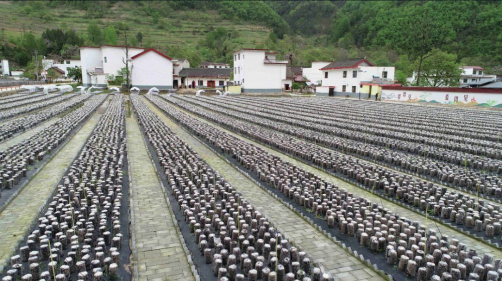 陜西省柞水縣金米村發(fā)展木耳產(chǎn)業(yè)(無人機(jī)照片)。記者陳昌奇 攝