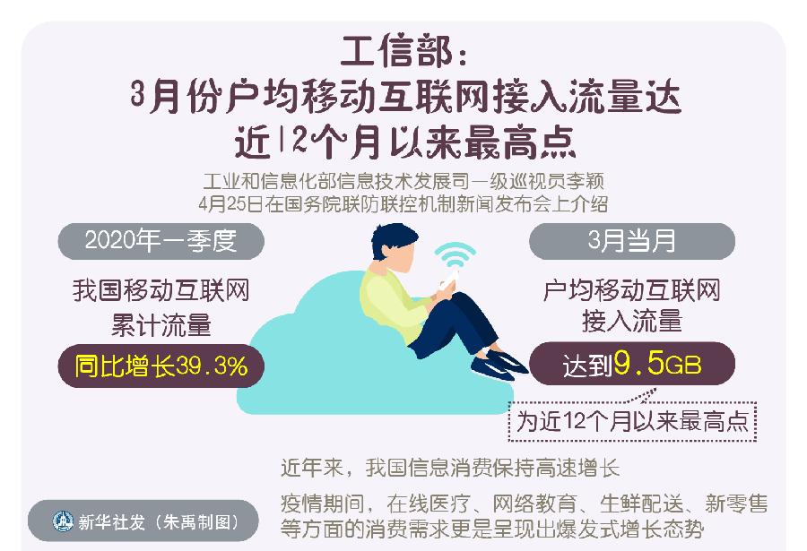 新華社北京4月25日電(記者王希、董瑞豐)今年一季度,我國(guó)移動(dòng)互聯(lián)網(wǎng)累計(jì)流量同比增長(zhǎng)39.3%,3月當(dāng)月戶(hù)均移動(dòng)互聯(lián)網(wǎng)接入流量達(dá)到9.5GB,為近12個(gè)月以來(lái)最高點(diǎn)。