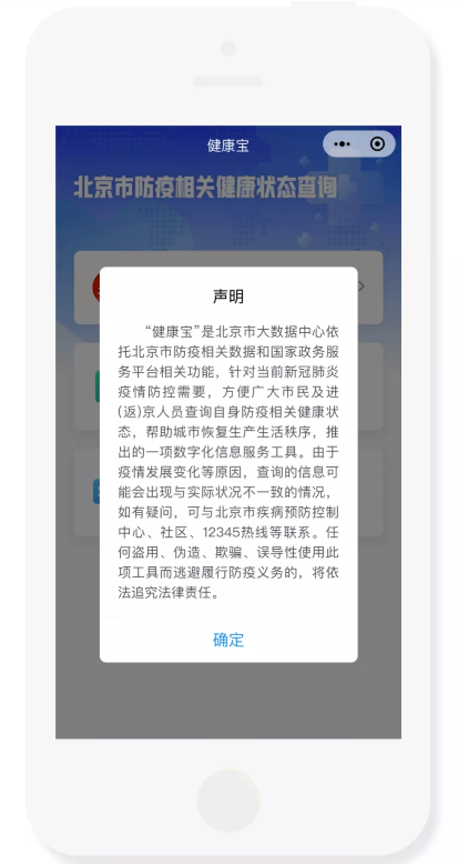 “健康寶”是北京市大數據中心依托北京市防疫相關數據和國家政務服務平臺相關功能,針對當前新冠肺炎疫情防控需要,方便廣大市民及進(返)京人員查詢自身防疫相關健康狀態(tài),幫助城市恢復生產生活秩序,推出的一項數字化信息服務工具。
