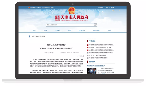 京冀來津人員通過“津心辦”APP、“津心辦”支付寶小程序、“津心辦”微信小程序申領天津“健康碼”,享受同城待遇,并依托全國一體化政務服務平臺,通過跨地區(qū)防疫健康信息數據共享,實現京津冀“健康碼”信息互認,生成天津“健康碼”,憑碼出行。
