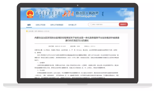 內蒙古自治區(qū)以規(guī)范和簡化健康通行碼辦理、方便群眾生產生活、促進人員有序流動為目的,以互聯(lián)網、大數據為支撐,依托全國一體化政務服務平臺,建立省際防疫健康通行碼互認機制,居民在當地申領的健康通行碼,在建立互認機制的?。▍^(qū)、市)之間互認,出行時無需重復申領。
