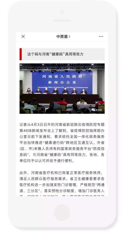 河南省依托全國一體化政務服務平臺加快推進“健康通行碼”跨地區(qū)互通互認。外省(區(qū)、市)來豫人員持有的國家政務服務平臺“防疫信息碼”,與河南省“健康碼”具有同等效力,各地、各單位均予以認可并給予通行便利。