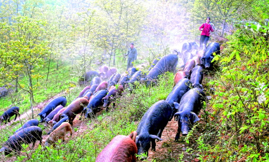 保安鎮(zhèn)東灣村,林坡資源豐富,遠(yuǎn)離人口密集區(qū)域,是生態(tài)養(yǎng)殖的好地方。周紅珍用4萬元積蓄,從外地購買了50余頭豬崽,開始養(yǎng)豬。因?yàn)闆]有經(jīng)驗(yàn),豬崽不到2個(gè)月全部死光,周紅珍欲哭無淚。經(jīng)過多方求教,得知是外地品種不適合山區(qū)氣候所致。她及時(shí)調(diào)整養(yǎng)殖策略,向親朋籌錢50余萬元,購買種豬、修建圈舍,并通過網(wǎng)絡(luò)學(xué)習(xí)養(yǎng)殖技術(shù),嘗試著繁殖豬崽。為了降低成本,從圈舍消毒、打掃衛(wèi)生、山坡放養(yǎng)、打疫苗,甚至是深夜接生,都是她和父親、哥嫂等家人完成,自己也成了一名“獸醫(yī)”。