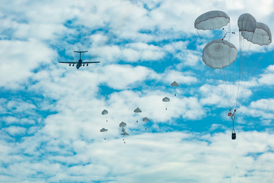 2000年8月,空降兵成功進(jìn)行了一次連投30件作戰(zhàn)物資的試驗(yàn),超過國(guó)外一次連投最多22件的紀(jì)錄,這是空降作戰(zhàn)物資實(shí)施快速補(bǔ)給最有效的方法,從此,空降兵有了可靠的“機(jī)動(dòng)式倉(cāng)庫(kù)”。