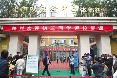 明日,北京8萬多名初三學(xué)生將正式復(fù)課。如何開展體育活動?出現(xiàn)突發(fā)事件如何進行處理?5月8日,記者對北京市朝陽區(qū)陳經(jīng)綸中學(xué)本部初中進行探訪。
