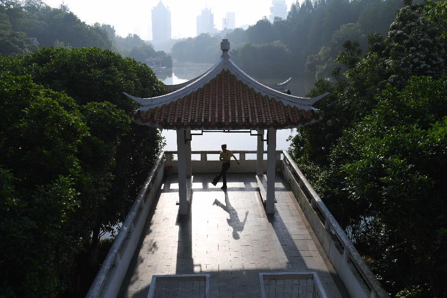 5月3日,市民在合肥市環(huán)城公園內(nèi)晨練。 當日是“五一”假期第三天,合肥市民紛紛來到戶外,健身休閑,樂享假期。 新華社記者 張端 攝