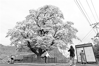 因為一株流蘇古樹正值花期,讓平靜的蘇家峪村熱鬧起來,優(yōu)雅清新的流蘇花,吸引來眾多鄉(xiāng)鄰前來觀賞。據(jù)記者了解,流蘇樹是北京市二級保護野生植物,能達到古樹級別的流蘇樹非常稀少,全市僅有三株,因此極為珍貴。