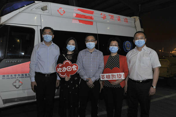 四川省衛(wèi)生健康委黨組成員、副主任宋世貴受省應對新冠肺炎疫情防控應急指揮部副指揮長、省衛(wèi)生健康委黨組書記沈驥、省應對新冠肺炎疫情防控應急指揮部副指揮長、省衛(wèi)生健康委主任何延政的委托,與四川大學華西醫(yī)院副院長劉倫旭率領相關人員到機場迎接。宋世貴表示,四川堅決貫徹落實黨中央部署,堅持全國一盤棋,一方有難,八方支援,選派優(yōu)秀的專家進行戰(zhàn)疫馳援。這次大災來了之后,康焰剛從武漢戰(zhàn)斗回到四川不到3天,又受國務院應對新型冠狀病毒肺炎疫情聯防聯控機制醫(yī)療救治組委派,轉戰(zhàn)綏芬河、牡丹江,一直在前方堅持戰(zhàn)疫,工作很出色,是全省衛(wèi)生健康系統(tǒng)的優(yōu)秀代表,也得到了國家衛(wèi)健委的充分肯定。
