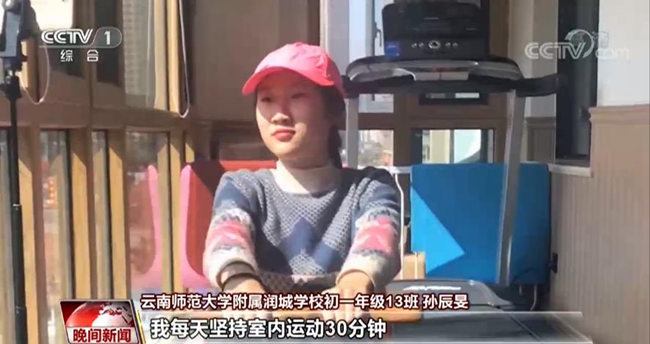 云南師范大學(xué)附屬潤城學(xué)校初一年級(jí)13班 孫辰旻:在爸爸的陪伴下,我每天堅(jiān)持室內(nèi)運(yùn)動(dòng)30分鐘,室外運(yùn)動(dòng)1小時(shí)。體育運(yùn)動(dòng)不僅能提升我的身體素質(zhì),還能不斷磨練我的意志,增強(qiáng)我的自信。