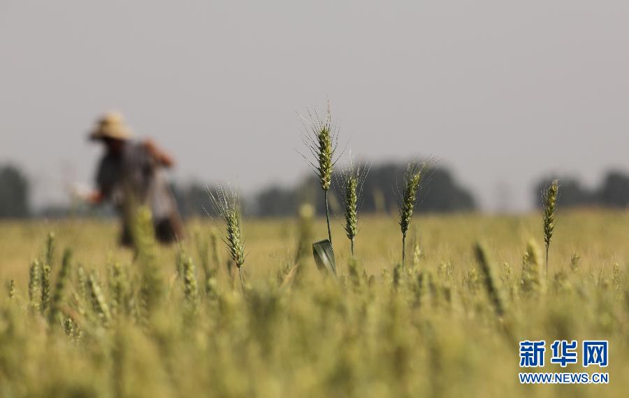 5月20日,河南省武陟縣大虹橋鄉(xiāng)西小虹村農(nóng)民在麥田里忙碌。 當(dāng)日是二十四節(jié)氣中的小滿。 新華社發(fā)(馮小敏 攝)