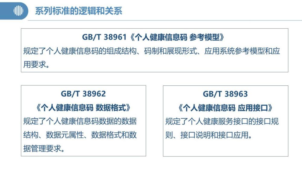 據(jù)了解,健康碼“國標(biāo)”由《參考模型》《數(shù)據(jù)格式》和《應(yīng)用接口》三項(xiàng)標(biāo)準(zhǔn)構(gòu)成??傮w上來看,《參考模型》是框架性標(biāo)準(zhǔn),重在提出“健康碼”應(yīng)用系統(tǒng)和系統(tǒng)間互認(rèn)的技術(shù)模型;《數(shù)據(jù)格式》規(guī)范了個(gè)人健康信息數(shù)據(jù),重點(diǎn)在數(shù)據(jù)“原料”層面下功夫;《應(yīng)用接口》則可看作是框架模型下實(shí)現(xiàn)系統(tǒng)對(duì)接互認(rèn)的操作指導(dǎo)手冊(cè)。三項(xiàng)標(biāo)準(zhǔn)互為支撐和補(bǔ)充,共同適用于指導(dǎo)“健康碼”系統(tǒng)的設(shè)計(jì)、開發(fā)和系統(tǒng)集成。