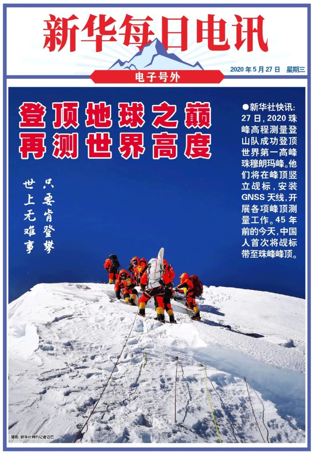 5月27日,2020珠峰高程測(cè)量登山隊(duì)
