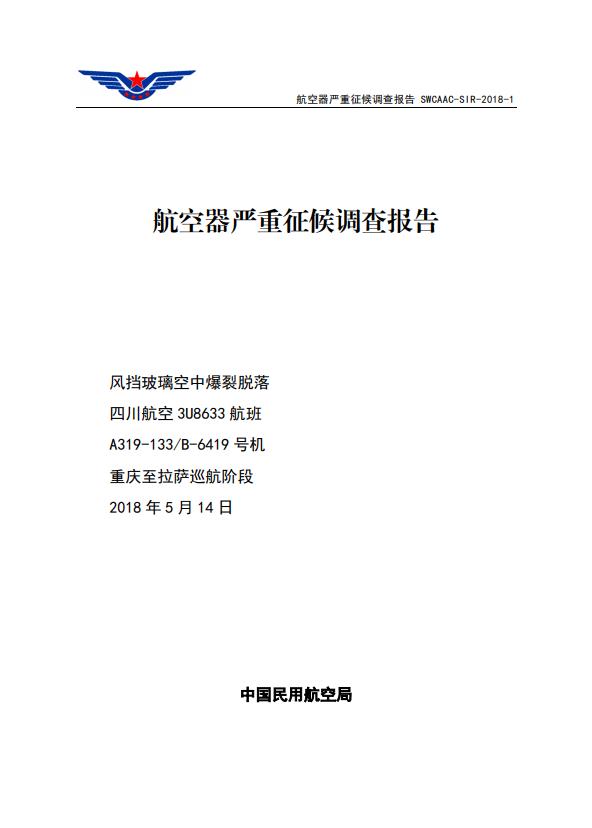 6月2日,中國(guó)民用航空安全信息系統(tǒng)發(fā)布2018年5月14日川航A319-100/B-6419號(hào)機(jī)執(zhí)行3U8633重慶至拉薩航班風(fēng)擋玻璃空中爆裂脫落事件的調(diào)查報(bào)告。