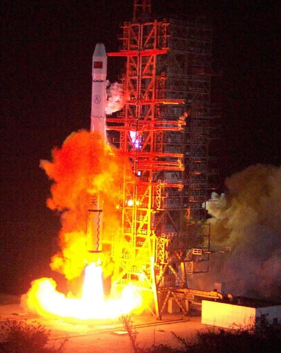 2003年5月25日零時(shí)34分,我國在西昌衛(wèi)星發(fā)射中心用“長(zhǎng)征三號(hào)甲”運(yùn)載火箭,成功地將第三顆“北斗一號(hào)”導(dǎo)航定位衛(wèi)星送入太空。新華社記者李剛攝(數(shù)碼傳真照片)