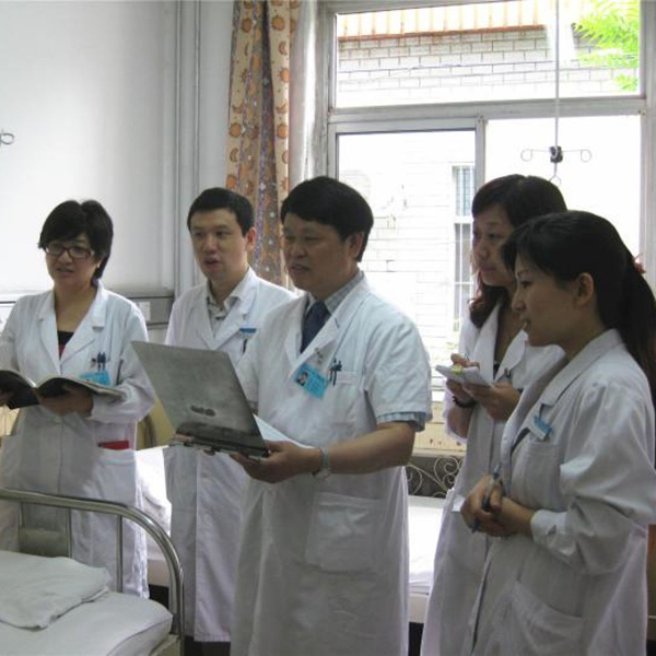 中國醫(yī)學(xué)科學(xué)院腫瘤醫(yī)院徐兵河教授(右三)、馬飛教授(右四)攜治療團(tuán)隊(duì)在病房查問病人康復(fù)情況。(圖片由受訪者提供)