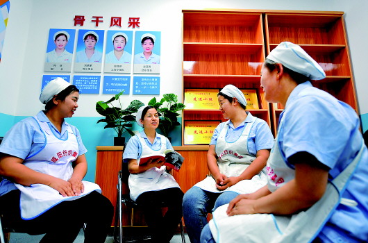 三伏天,車間熱得像蒸籠,韓玉梅用自己的獎金買橘子粉、酸梅汁做成冷飲,一杯杯送到小組姐妹們的手中。組里有人生了孩子,其他人會做針線活的送衣服、會做飯的送營養(yǎng)餐。每到年底,小組還要把成員的家人請到廠里開聯(lián)歡會。