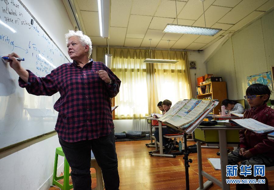 一名外籍老師在西寧市外籍人員子女學(xué)校內(nèi)為孩子們上課(2019年11月4日攝)。新華社記者吳剛攝