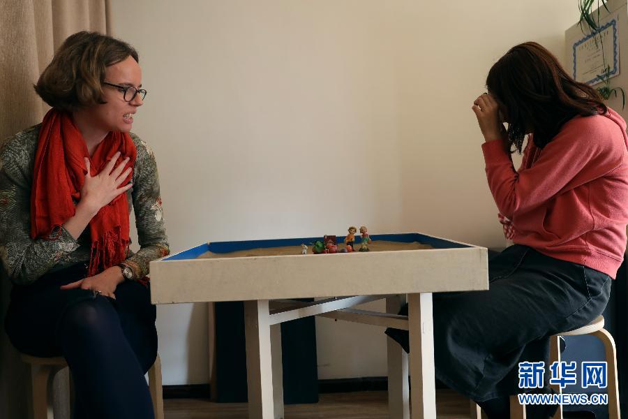 安可悅在位于西寧的心理咨詢工作室輔導(dǎo)一名來訪者(2019年10月22日攝)。新華社記者趙玉和攝