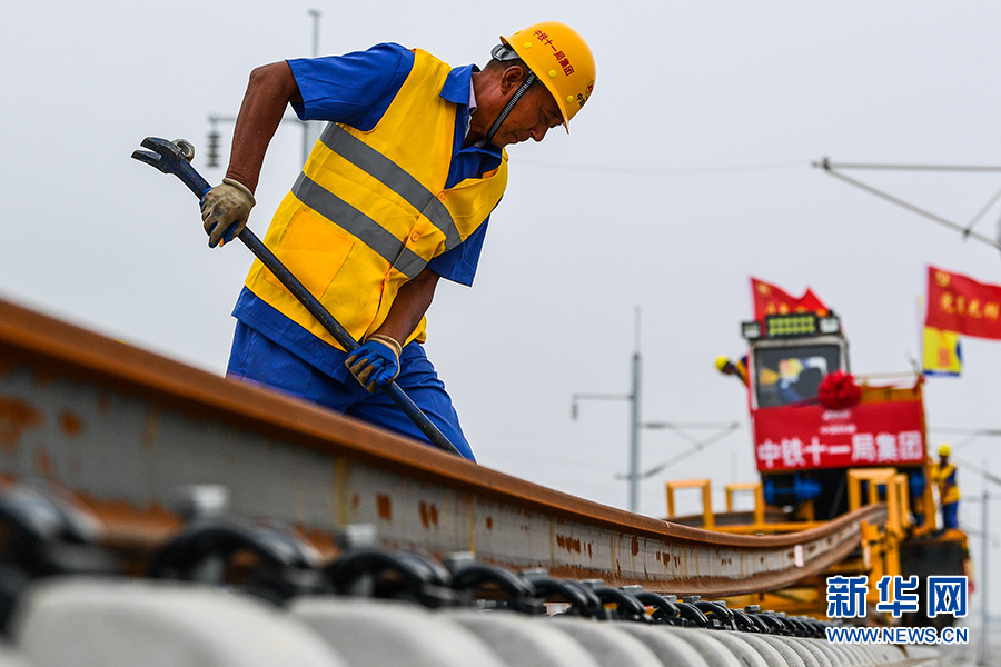 6月12日,中鐵十一局的工程人員在進行500米長軌落槽作業(yè)。 新華社記者 李博 攝(資料圖)