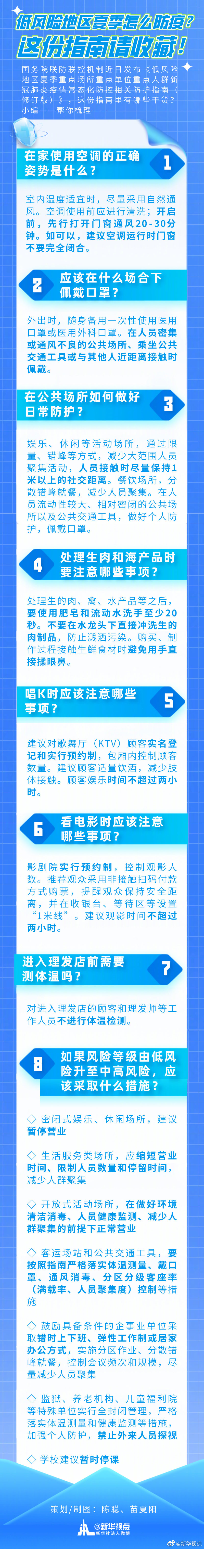 國(guó)務(wù)院聯(lián)防聯(lián)控機(jī)制近日發(fā)布《低風(fēng)險(xiǎn)地區(qū)夏季重點(diǎn)場(chǎng)所重點(diǎn)單位重點(diǎn)人群新冠肺炎疫情常態(tài)化防控相關(guān)防護(hù)指南(修訂版)》,這份指南里有哪些干貨?小編一一幫你梳理——