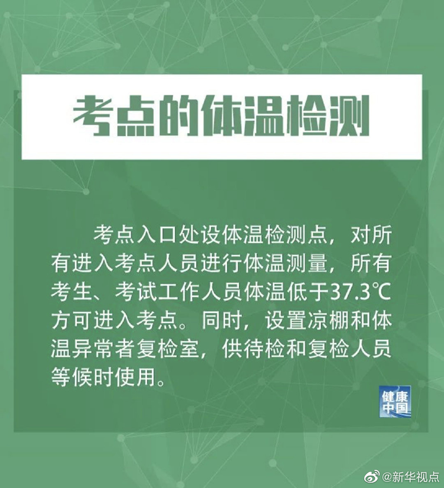 此外,措施提到,對(duì)參與組考、監(jiān)考環(huán)節(jié)的工作人員和考生,要求提前14天進(jìn)行日常體溫測(cè)量和身體健康狀況監(jiān)測(cè),做到每天體溫測(cè)量并記錄。