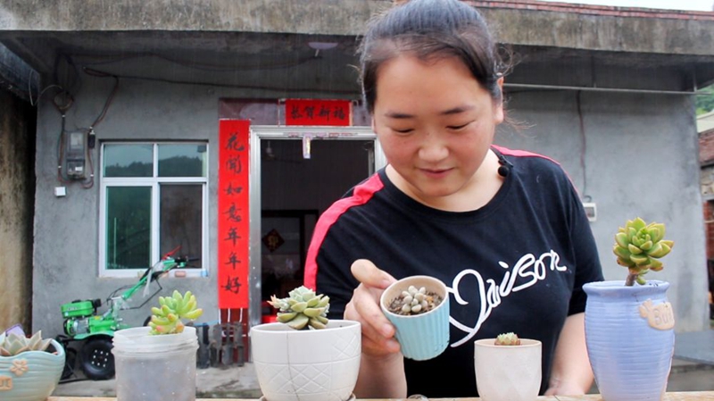 在尋烏縣丹溪鄉(xiāng)岑峰村,張荷花家讓記者眼前一亮——小院就在車來車往的縣道旁,本該積灰的地方卻沒啥塵土。房子雖是農(nóng)村少見的平房,但屋內(nèi)收拾得井井有條。低矮的院墻上,擺放著長(zhǎng)勢(shì)喜人的多肉、蟹爪蓮、長(zhǎng)壽花、玫瑰等植物,透露出主人的生活情趣。