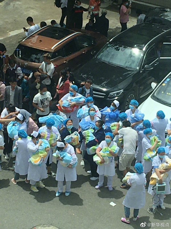 7月2日,貴州省畢節(jié)市赫章縣發(fā)生4.5級(jí)地震,震源深度13千米。地震襲來(lái),當(dāng)不少人都往外疏散時(shí),正在開(kāi)展業(yè)務(wù)學(xué)習(xí)的赫章縣人民醫(yī)院新生兒科醫(yī)生們第一時(shí)間“逆行”病房,緊隨而來(lái)的還有實(shí)習(xí)生、急診科護(hù)士等。他們每人負(fù)責(zé)一個(gè)寶寶,抱著往外疏散,確保當(dāng)時(shí)在病房的26個(gè)新生寶寶平安撤離到安全地帶。致敬白衣天使?。ㄓ浾咄跣旅鳌Ⅰ橈w 圖片來(lái)源赫章縣人民醫(yī)院)