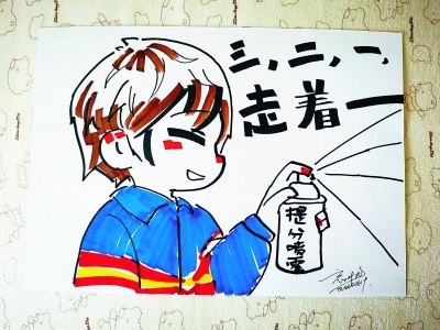 這已經(jīng)是張亦萱創(chuàng)作“高考”系列漫畫的第三年了,每張漫畫人物都有著滿滿的學(xué)校元素,比如紅黃藍(lán)相間的校服。“畫了三年,感覺現(xiàn)在閉著眼都能畫出來。”