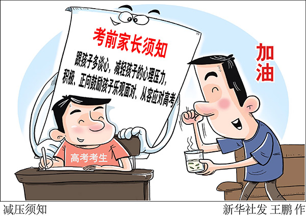 在緩解考生心理壓力上,關(guān)鍵提示提醒家長考前要按照高考的時(shí)間安排調(diào)整孩子作息,根據(jù)孩子的身體素質(zhì),選擇適合的運(yùn)動項(xiàng)目和方式稍作放松,高考期間不可運(yùn)動過量。同時(shí),家長要關(guān)注孩子的心理狀態(tài),營造溫馨、放松的家庭氛圍??梢愿⒆佣嗾勑?,減輕孩子的心理壓力,積極、正向鼓勵(lì)孩子樂觀面對、從容應(yīng)對高考。