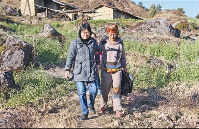圖為張桂梅(左)在家訪。華坪縣委宣傳部供圖
