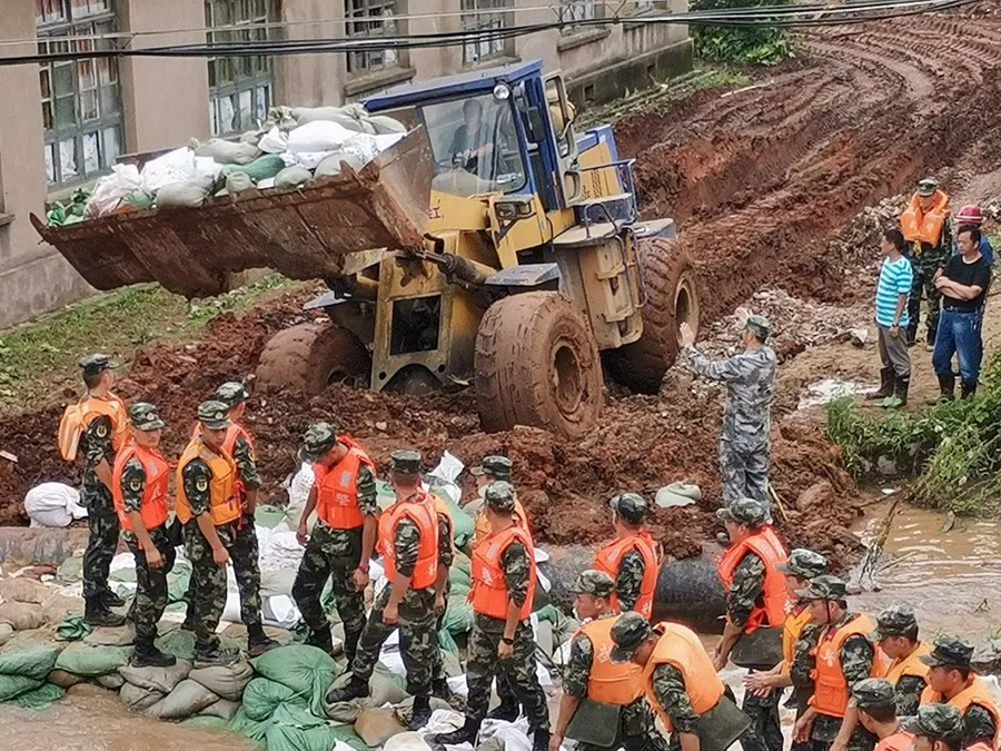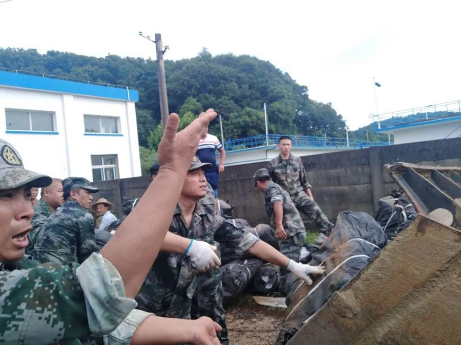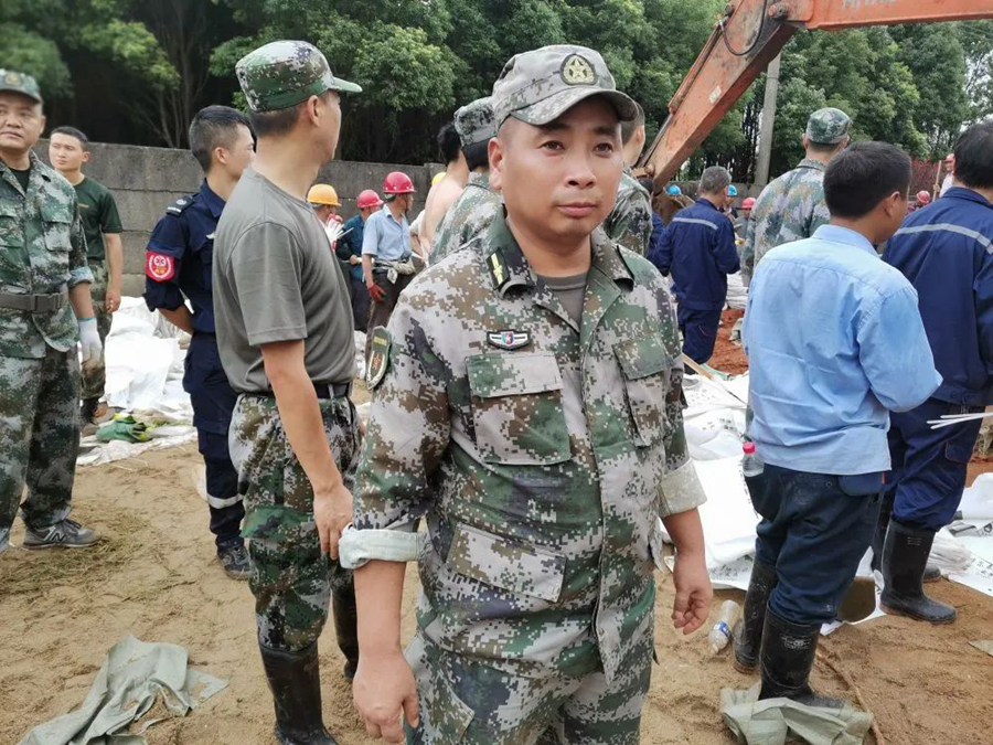 當(dāng)?shù)負(fù)岆U人員、武警安徽總隊池州支隊140名武警官兵第一時間趕赴現(xiàn)場,東至縣人武部同時組織90名地方民兵緊急支援,陳壽春位列“前鋒”。