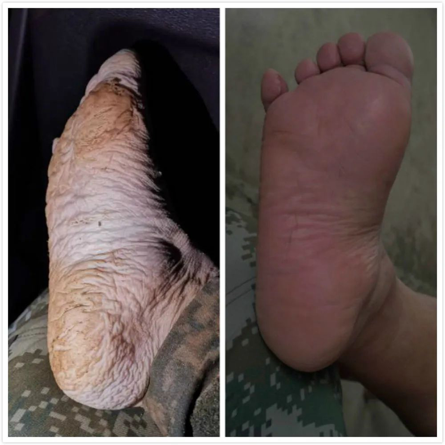 13日,一只“抗洪大腳”經(jīng)新華社報道后在很多人的微信朋友圈刷屏,讓網(wǎng)友大呼“心疼”。有網(wǎng)友留言稱:“這是我見過最好看的腳?!币灿芯W(wǎng)友問:“這是誰的腳?”