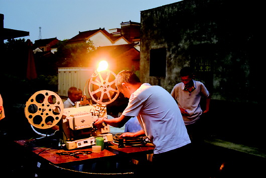 江南梅雨歇。夜幕降臨,水鄉(xiāng)巷陌間,膠片投影機(jī)發(fā)出的光柱伴著蟬鳴,再一次照在黑瓦白墻上。