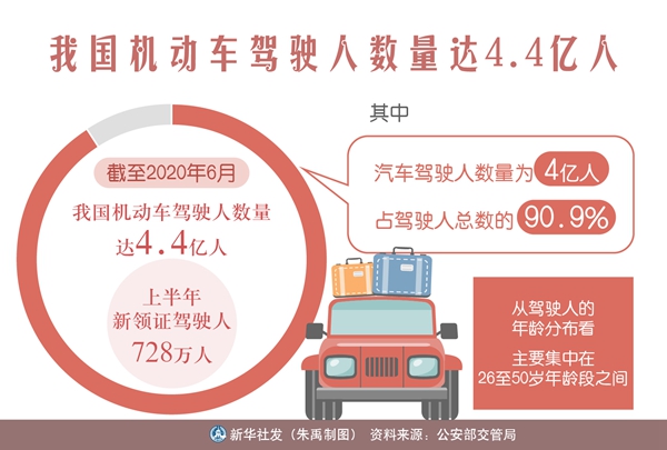 新華社北京7月18日電(記者劉奕湛)公安部交管局日前發(fā)布數(shù)據(jù)顯示,截至2020年6月,我國機(jī)動(dòng)車駕駛?cè)藬?shù)量達(dá)4.4億人,上半年新領(lǐng)證駕駛?cè)?28萬人。