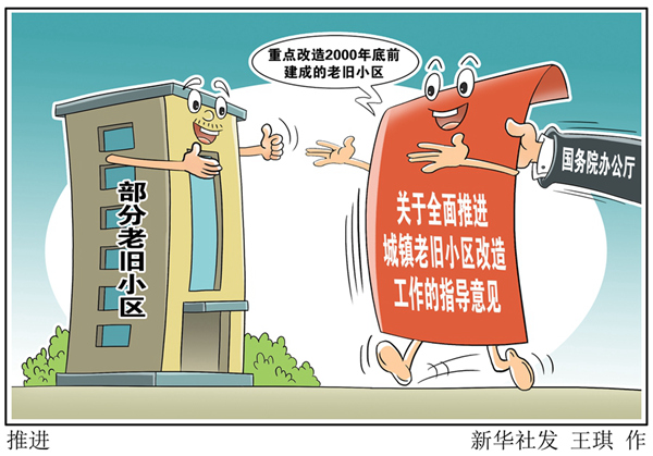 新華社北京7月20日電 國務(wù)院辦公廳日前印發(fā)《關(guān)于全面推進(jìn)城鎮(zhèn)老舊小區(qū)改造工作的指導(dǎo)意見》(以下簡稱《意見》),要求按照黨中央、國務(wù)院決策部署,全面推進(jìn)城鎮(zhèn)老舊小區(qū)改造工作,滿足人民群眾美好生活需要,推動惠民生擴(kuò)內(nèi)需,推進(jìn)城市更新和開發(fā)建設(shè)方式轉(zhuǎn)型,促進(jìn)經(jīng)濟(jì)高質(zhì)量發(fā)展。