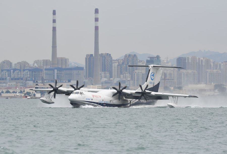國產(chǎn)大型水陸兩棲飛機(jī)“鯤龍”AG600成功實(shí)現(xiàn)海上首飛