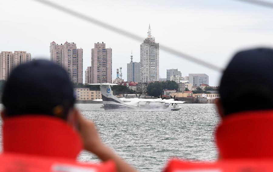 7月26日,水陸兩棲飛機(jī)AG600在海面滑行。 新華社記者 李紫恒 攝