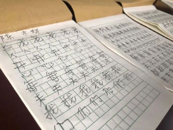 福建省三明市沙縣樂齡學(xué)堂老人寫的字“我們老人每天都開心” 林超 攝