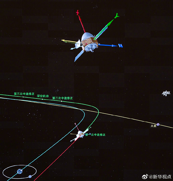 截至第一次軌道修正前,“天問一號”已飛行9天17個小時,距離地球超過300萬公里,探測器各系統狀態(tài)良好。此次3000牛發(fā)動機點火,在完成軌道修正的同時,驗證了發(fā)動機在軌的實際性能。
