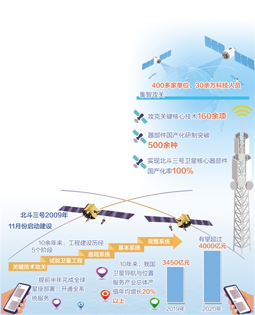 “北斗三號2009年11月份啟動建設(shè)。10余年來,工程建設(shè)歷經(jīng)關(guān)鍵技術(shù)攻關(guān)、試驗衛(wèi)星工程、最簡系統(tǒng)、基本系統(tǒng)、完整系統(tǒng)5個階段,提前半年完成全球星座部署,開通全系統(tǒng)服務(wù)。建成即開通、開通即服務(wù),工程建設(shè)取得了巨大成就。”冉承其說。