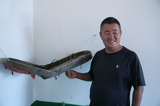 孟文龍喜歡本民族文化,他經(jīng)營(yíng)的民宿房屋是典型的鄂溫克族風(fēng)格建筑,房頂上鋪著每年換新的苫房草,房屋兩側(cè)有兩個(gè)大大的煙囪供室內(nèi)火炕使用;室內(nèi)墻面上掛著農(nóng)具鄂溫克木叉和孟文龍小時(shí)候睡過(guò)的鄂溫克悠車,他說(shuō)家里兄弟都是在這個(gè)悠車上長(zhǎng)大的;還有他家用鄉(xiāng)里白樺樹(shù)汁制作的碳酸飲料,別提多好喝了。