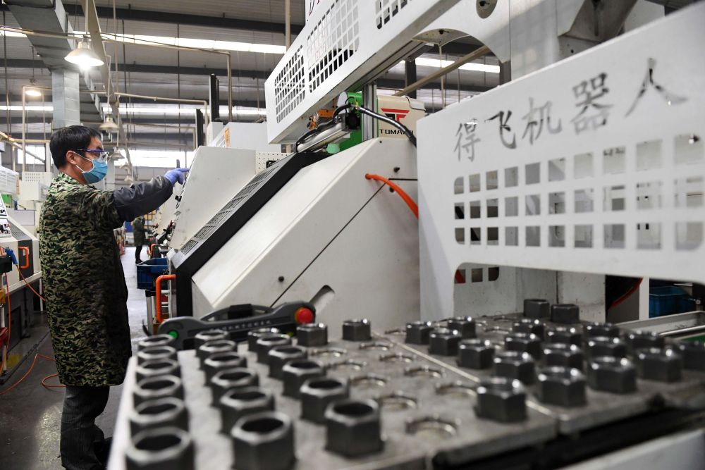 3月5日,在江西省宜春市一家企業(yè)車間內,工人在半自動化生產線上工作。各地工業(yè)企業(yè)在做好疫情防控的同時積極復工復產。新華社發(fā)(周亮 攝)