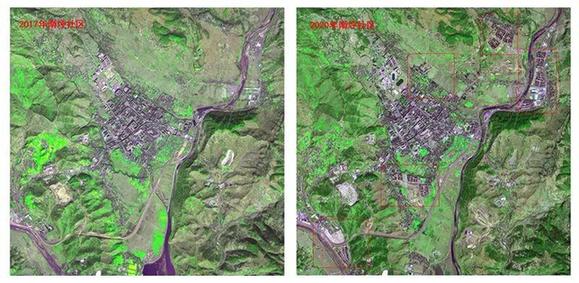 這是從遙感衛(wèi)星上看到的阿土列爾村原址和新址,兩地相距不過幾十公里,生活條件卻是天壤之別。?