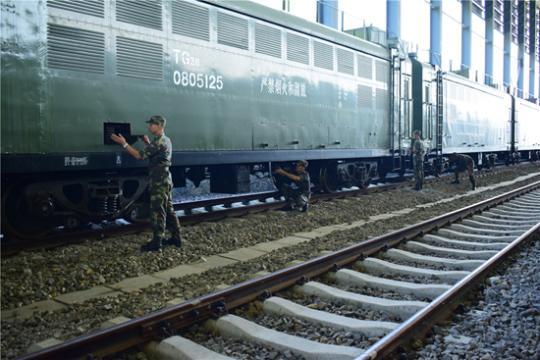 軍列到站,戰(zhàn)士們會(huì)第一時(shí)間下車檢查列車狀態(tài)。