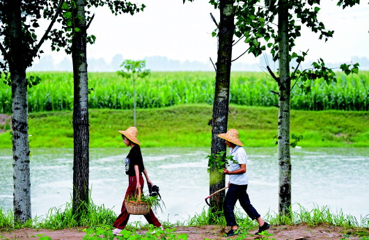 8月5日,王曉楠(左)與父親在河邊拍攝后準備回家。組圖均由新華社記者郝源攝